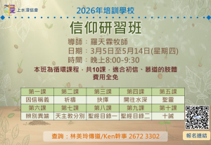 時間︰晚上8:00-9:30 導師︰羅天霖牧師