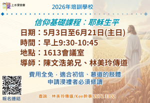 提醒︰如欲在本會受浸,需曾修讀信仰基礎課程(包括以上的耶穌生平)。